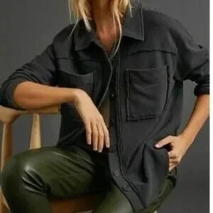 T. la Anthropologie $188 Black Eamon Shacket Shirt Jacket Size XS Black NEW B78