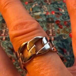 Stylish ring with a chain-link design. The silver stainless steel offers versatile everyday wear. Lightweight stainless steel construction for lasting shine. Perfect for gifting or everyday style. Stainless steel will not fade or loose its color!