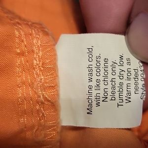 Very good used condition. Smoke free home. Minor fadibg if any. Orange/melon. Two side pockets and two rear pockets. Belt loops. Waist 14.5", rise 8.5", hips 20", inseam 10".