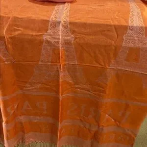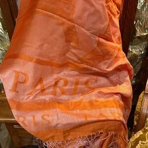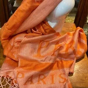 Paris Script Orange Silk Blend Scarf Wrap 80 x 27 inch NWOTs