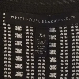 Elegant, classic knit peplum top from White House Black Market. Pullover style, nipped at waist, this is figure flattering! Black with ecru print. NEW without tags! Perfect!
