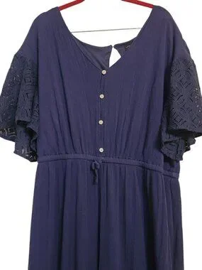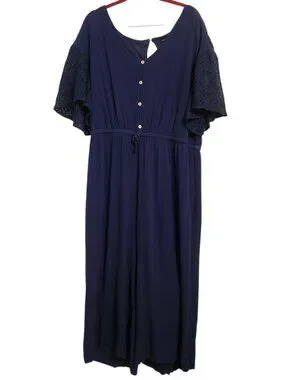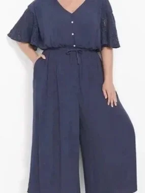 Lane Bryant Jumpsuit Navy One Piece Tie Waist Cottage Boho Lace Sleeve Size 20