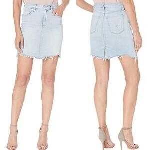 Hudson lulu denim jean pencil skirt raw hem light wash NWT