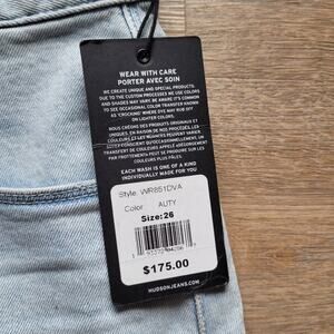 Beautiful Hudson "Lulu denim skirt"! Sits high on the waist with a mid thigh length and a raw hem. 98% cotton so it has just a smidge of stretch. New with tags, size 26 (or about a US 4 approximately)