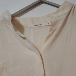 Elegant cream tunic by Ellison. Features a relaxed fit and rolled sleeves. Perfect for casual wear.