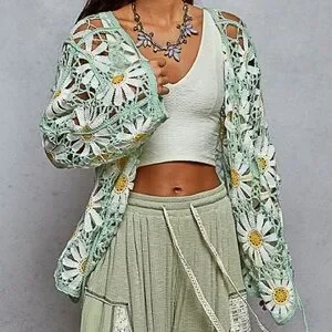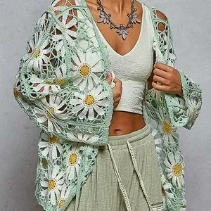 NWT POL Bohemian Mint Daisy Crochet Lace Cardigan Sweater One Size , in stock available for next day shipping!!