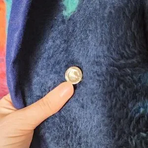 this is in great condition with minor signs of wear and pilling. one of the embellishments is missing.