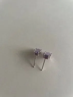 These are vintage sterling silver earrings set with purple quartz & purple CZ