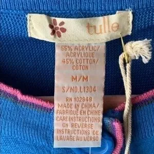 NWT Size: Medium Color: Blue w/ pink piping 55% Acrylic / 45% Cotton