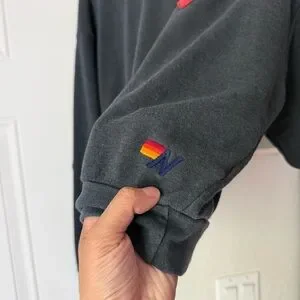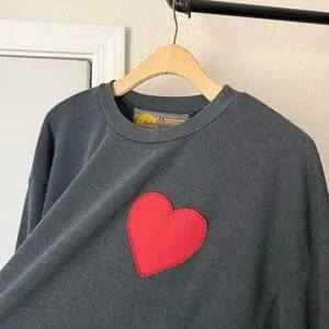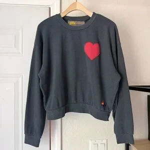 AVIATOR NATION charcoal grey heart patch crew boxy cropped oversized sweater