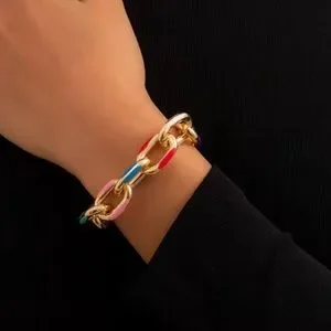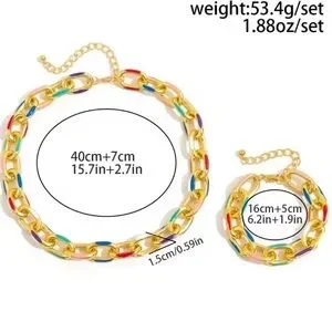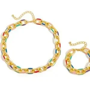 Multicolor Gold Chain Necklace and Bracelet Set