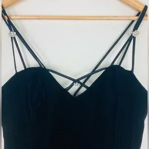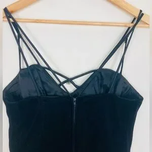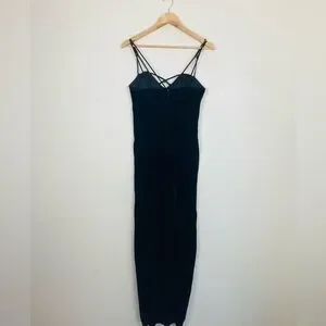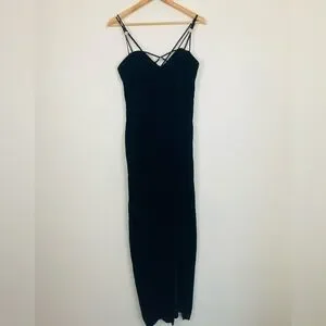 Vintage 90s Y2K strappy back velvet column dress with front slit.