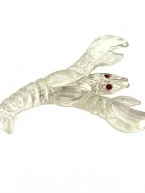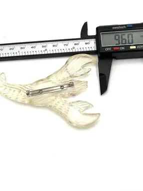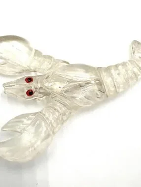 Unsigned Lucite Clear Lucite Crawfish/Lobster Vertical Costume Brooch size