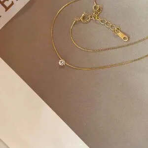 Elegant and timeless, this necklace features a brilliant round moissanite solitaire on a sleek 18K gold filled chain