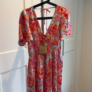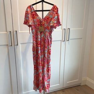 Anthropologie Able the Label Navaeh Pink and Orange Floral Maxi Dress