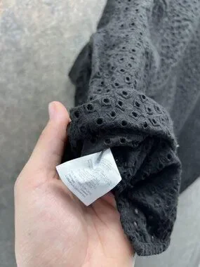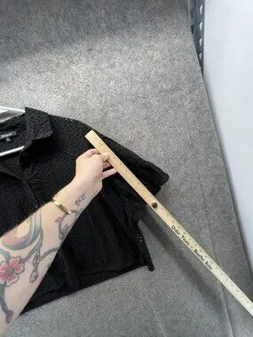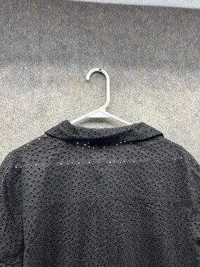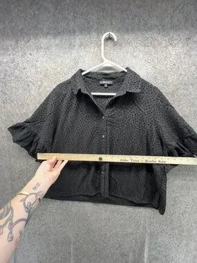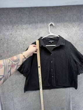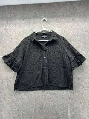 Madewell Blouse Womens XXL Black Eyelet Button Front Flutter Sleeve Cropped