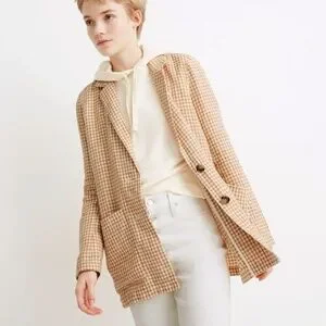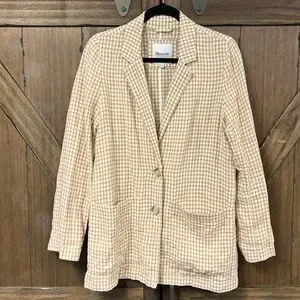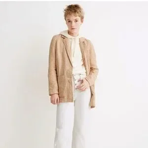 Madewell Linen Dorset 80s Oversized Blazer in Gingham Check Size Small