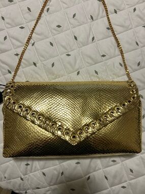 Rebecca Minkoff Metallic Gold Envelope Clutch with Chain