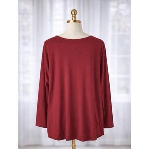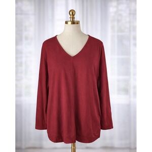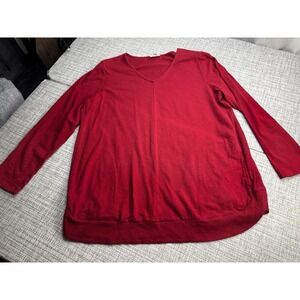 J Jill Red Knit Popover Top Tunic Cotton Stretch V-Neck Pockets Round Hem XL