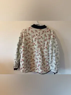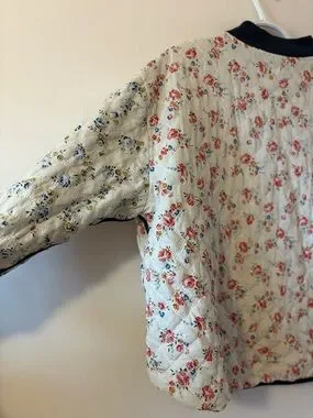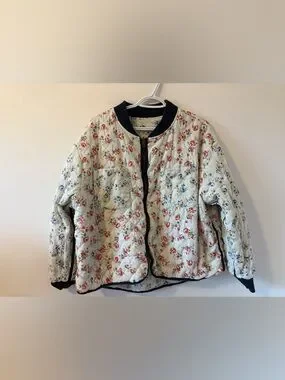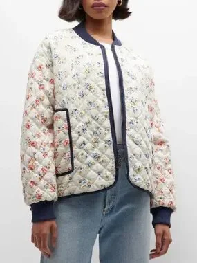 The Great "The Reversible Quilted Bomber" jacket with floral motif sold at Anthropologie