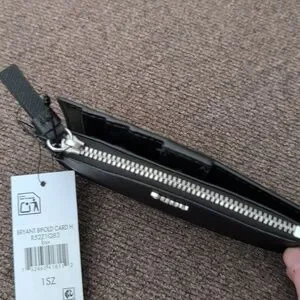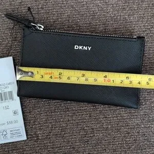 Chic, black, cute, mini wallet/change purse, pouch by DKNY. Ideal for carrying ID and credit cards. Bryant bifold card holder with one zipper pouch.