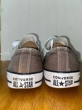 Authentic Converse low top sneakers in brown canvas. White laces and rubber toe caps. Classic star ankle patch and contrast stitching. Flexible rubber outsole for daily wear. Timeless casual style.