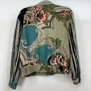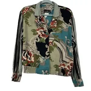 Keywords: Vintage, 90s, Art to Wear, Maximalist, Bohemian, Eclectic, Matching Set, Rayon, Floral, Geometric, Retro, Sophisticated, Bold Print, Designer Vintage, wearable art, bloomcore, earthy, earth tones, whimsical, small, forest fairy, artsy, vintage, botanical, lagenlook, relaxed, avant-garde, striking, bold, unique, statement piece, statement jacket, bomber, true vintage