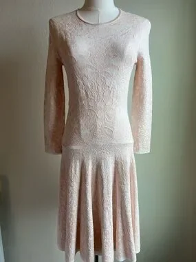 Alexander McQueen Pale Blush Lace Long-Sleeve Mini Dress