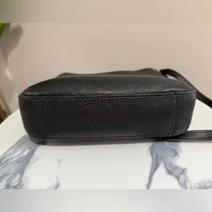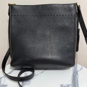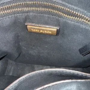 Sleek pebbled leather messenger bag from Tory Burch. Features an adjustable crossbody strap and tonal logo accent. Minimal, refined design for daily wear.
