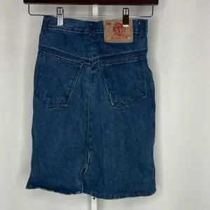 vintage denim skirt, 90s skirt, y2k denim, high waisted skirt, blue jean skirt, casual minimalist, streetwear, retro fashion, grunge aesthetic, capsule wardrobe staple, everyday denim skirt