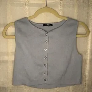 Brandy Melville Sweater Vest Women One Size Blue Cropped Button Front MH272S