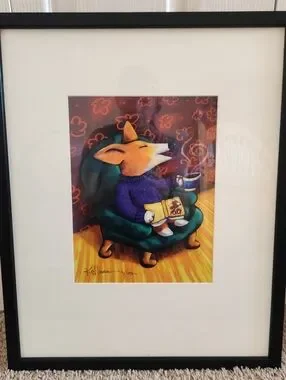 KOLLMAN Art Print Limited Edition Fox With Coffee Cup Colorful Kids 17 x 21