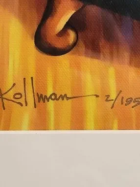 KOLLMAN Art Print Limited Edition Fox Cat With Coffee Cup Colorful Kids 17 x 21