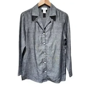 Vintage Linen Shirt Button Down Freeport Studio Gray Size 6 L.L. Bean