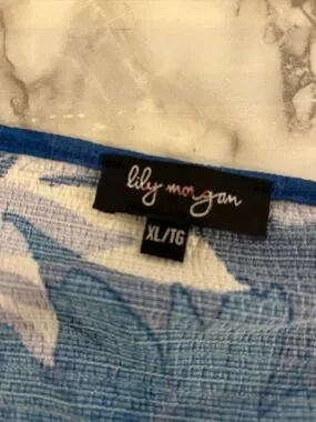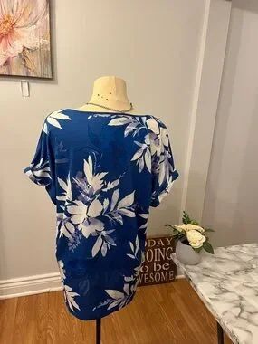 😍SHOW SPECIAL LILY MORGAN Blue & White Floral Drop Sleeve Blouse Ring Detail XL