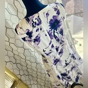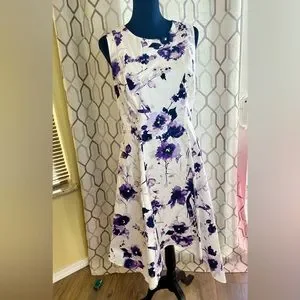 EUC DKNY White & Purple Floral Handkerchief Hem Fit-&-Flare Dress