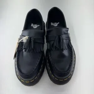 Loafers with a little more sole. We’ve reworked our classic Adrian loafer — now elevated on our Bex platform sole for extra height and attitude. Made from Smooth leather with double tassels and a kiltie fringe. The DM’s sole is signed with yellow welt stitching and our distinctive grooving.