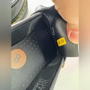 Wipe away dirt using a damp cloth. Apply a neutral or correct colored wax based shoe polish. Buff with a Dr. Martens Shoe Brush to restore shine as desired.