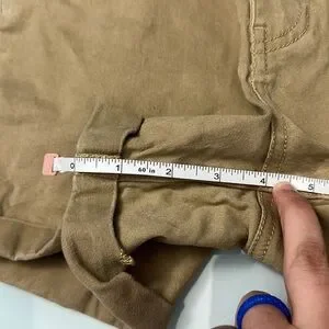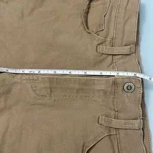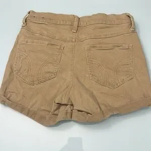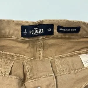 The shorts are lightly used, with mild wear and tear, overall in great condition! These are a size 3/26 pair of high rise midi khaki shorts by Hollister! They are made of a stretchy material. Measurements are as pictured. Comes from a non-smoking household.
