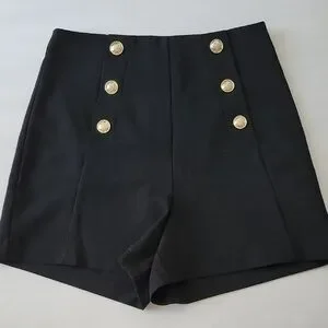 Zara Black High-Waist Sailor Shorts with Gold Buttons