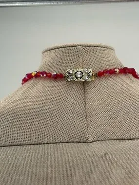 Vintage Ruby Red Aurora Borealis Crystal Statement Necklace ✨