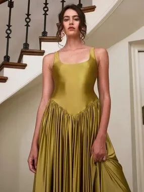 V-shaped corset bodice cinches the waist and creates an hourglass silhouette