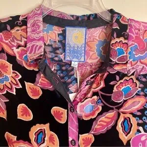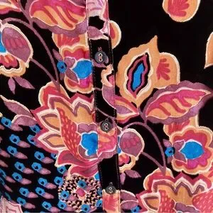 Johnny Was Yrene Burnout Blouse Alvarado w/ Tank Top Velvet Silk Blend Black
