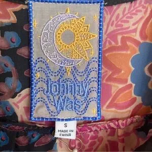 NEW Johnny Was Yrene Burnout Blouse Alvarado w/ Tank Top Velvet Silk Black Sz S