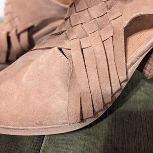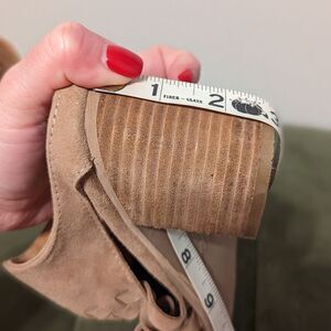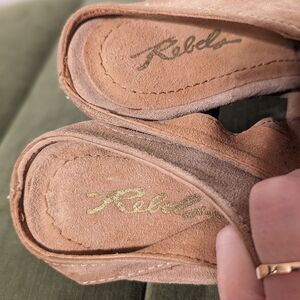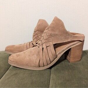 NWOT Rebels Levi Suede Cutout Block Heel Mules Tan