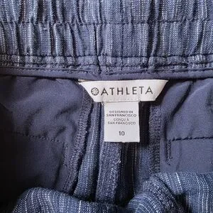 Super comfy Athleta pull-on shorts in a textured blue fabric.