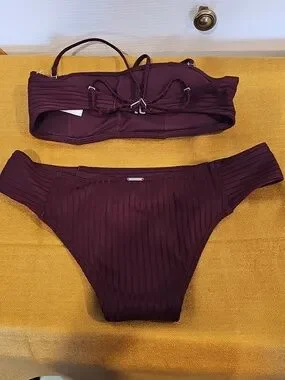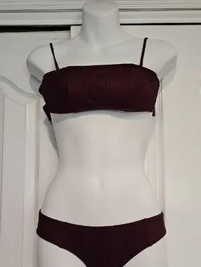 Abercrombie & Fitch Sz XXS Ribbed Oxblood Ribbed Bikini NWT