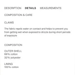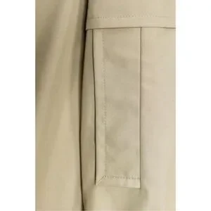 Front pockets. Tab detail on shoulders. Double-breasted.