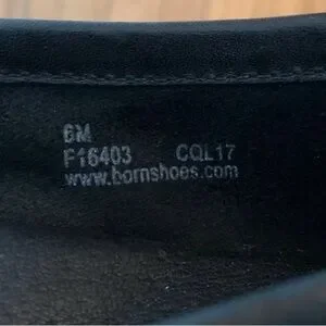 Sleek black leather loafers by Born. Penny strap and stitched apron detail. Cushioned insole for comfort. Classic silhouette for everyday wear.
