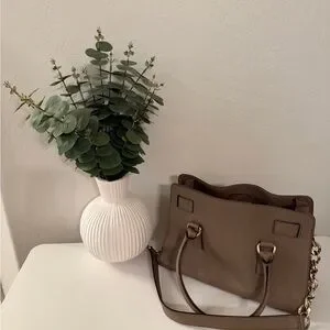 Michael Kors Taupe Leather Satchel with Gold Hardware
